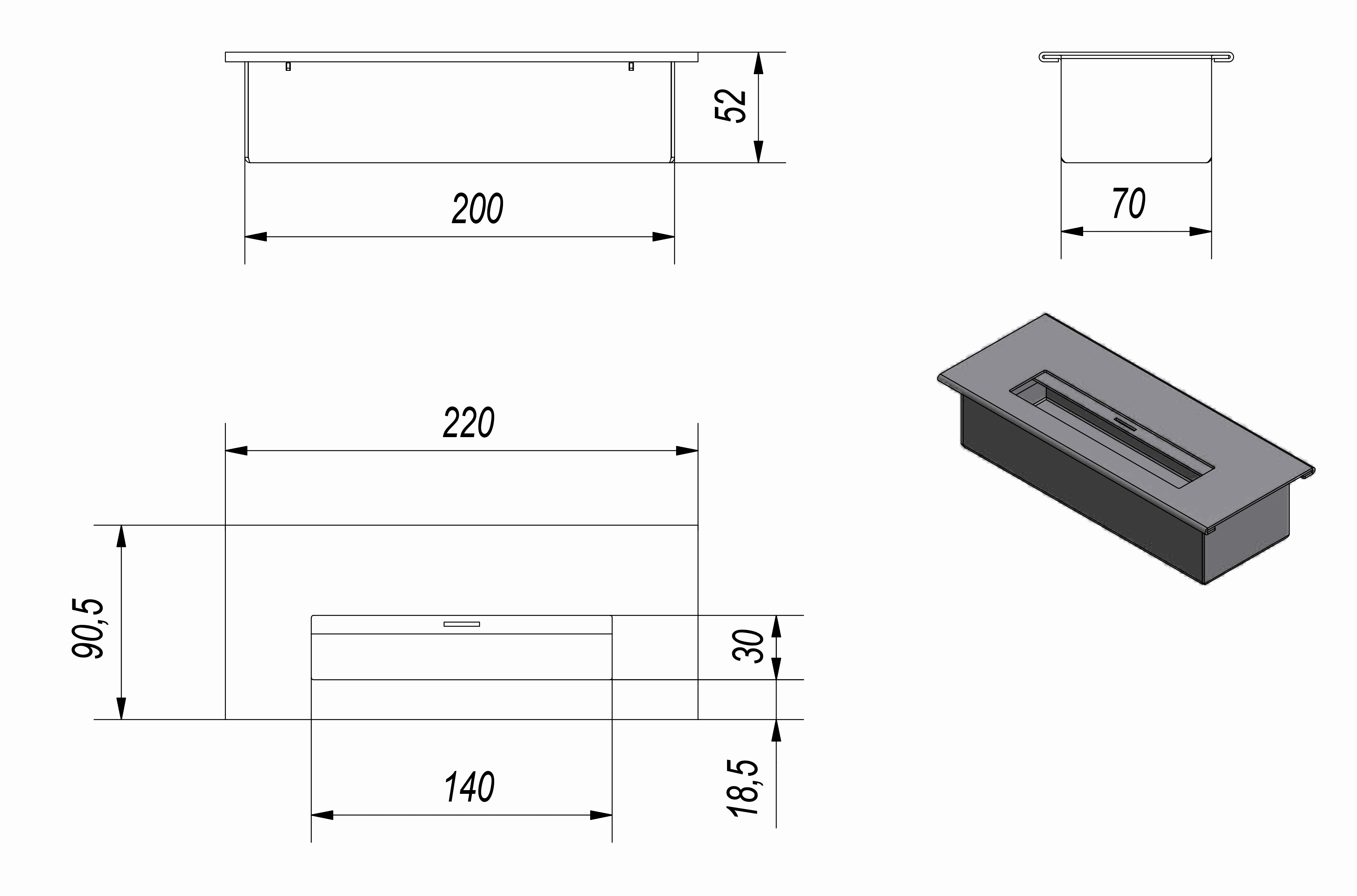 – правоаголен сигурен сад со должина од 200mm на био гориво (биот етанол)