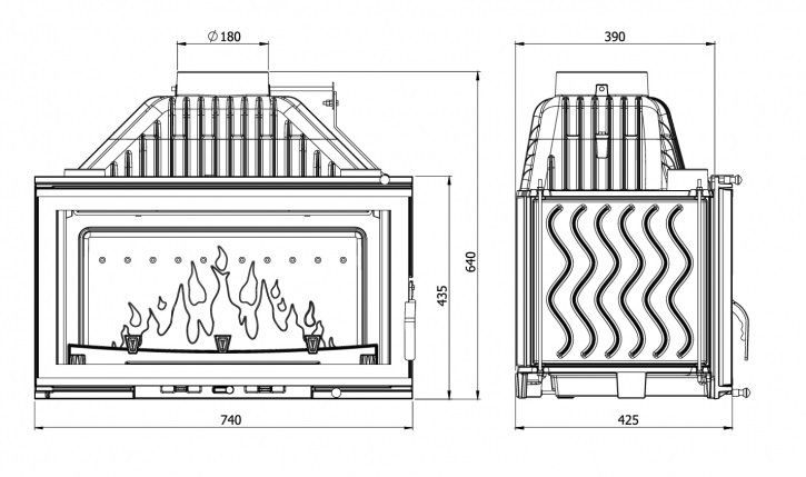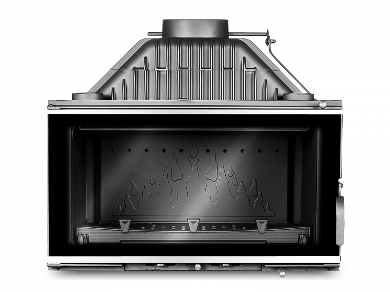 Вграден систем на чисто стакло и догорување на честички! Погоден е за домови со рекуперација. Вградениот систем за довод на воздух за согорување овозможува целосно согорување на честичките со што драстично се намалува загадувањето а стаклото на каминот останува подолго време чисто.